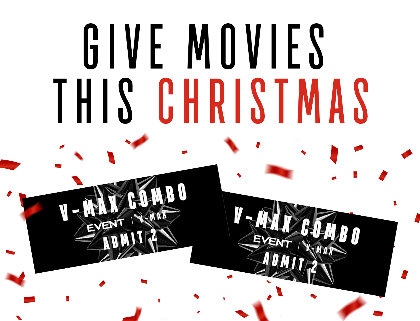 - 2 x V-Max admissions at Event Cinemas, BCC, GU Film House & Greater Union locations only.